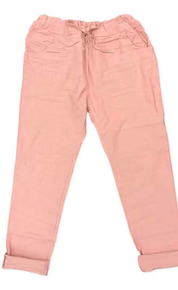 Kate Silver Bead Crinkle Stretch Pants - Pink